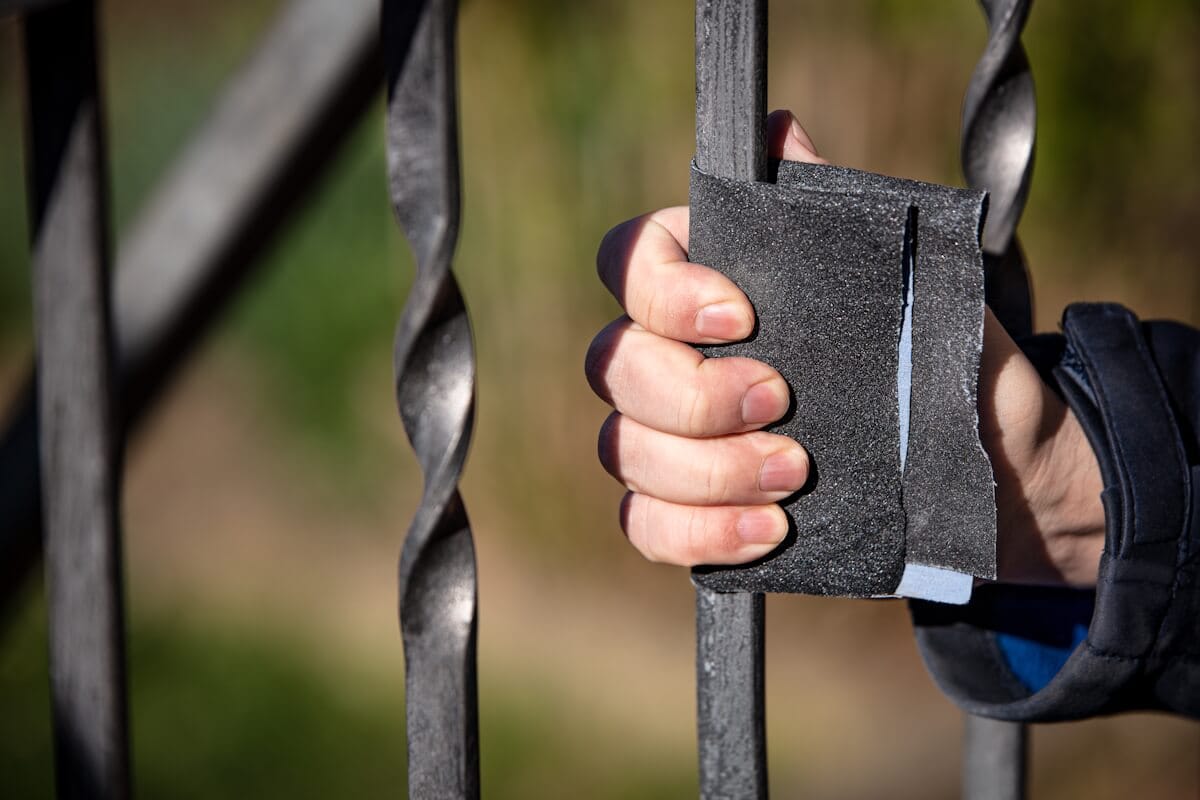 Remove rust from the fence mechanically, using sandpaper or a wire brush. The surface is ready for painting when it becomes smooth and there are no visible traces of rust. After sanding, wipe the surface with a dry cloth to remove all remaining dust. Clean grease and other impurities with NITRO thinner. During preparation, it is mandatory to wear protective equipment, including gloves, safety glasses, and a mask.